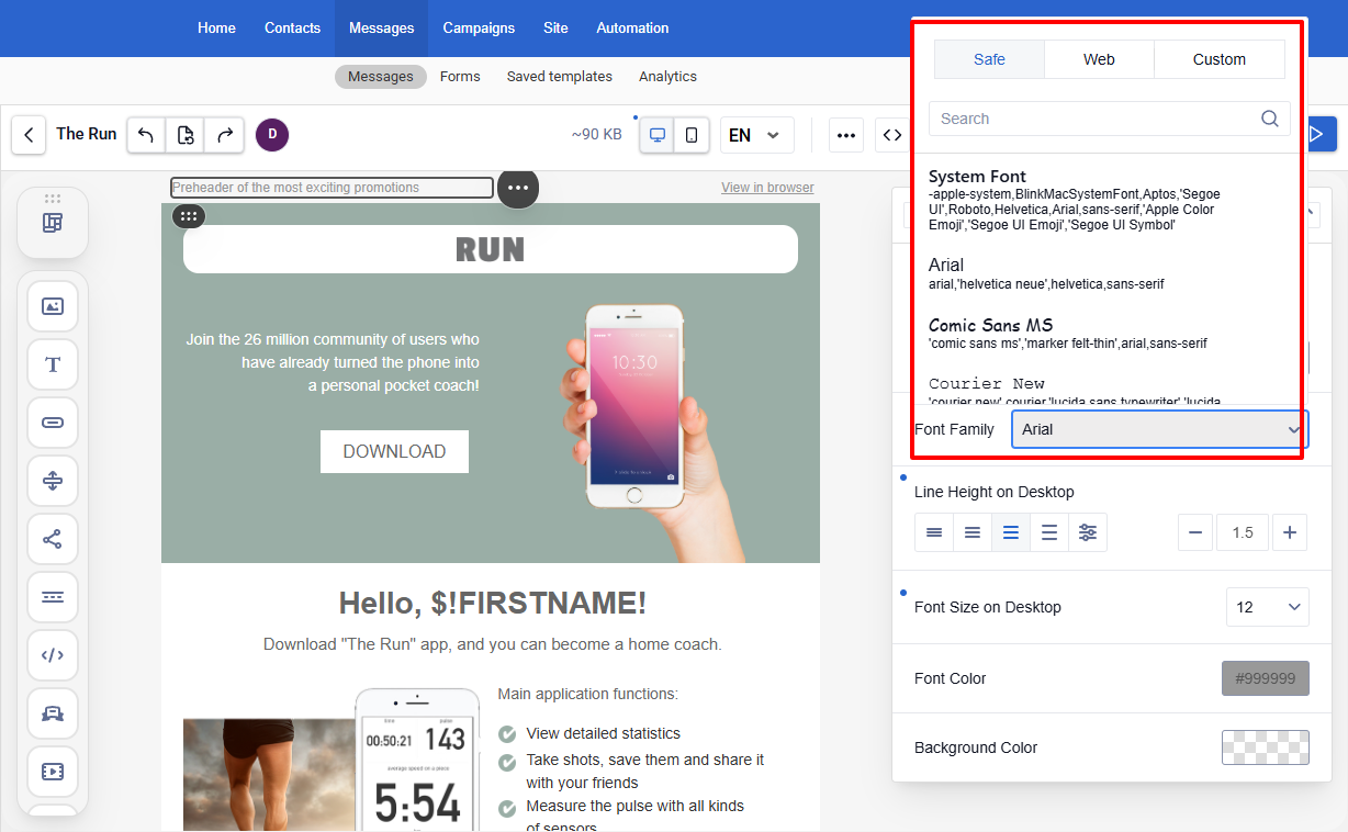 - Select Legible Fonts: Use standard fonts like Arial, Helvetica, or other sans-serif options to ensure readability across all devices. If you choose custom fonts, be aware that not all email clients support them and might substitute standard fonts instead.