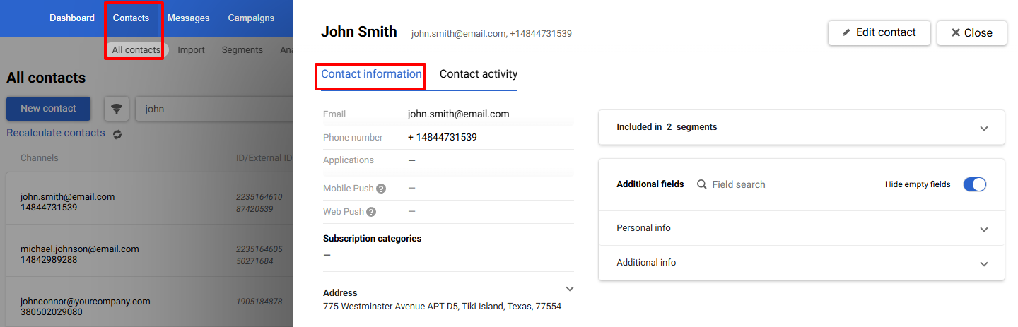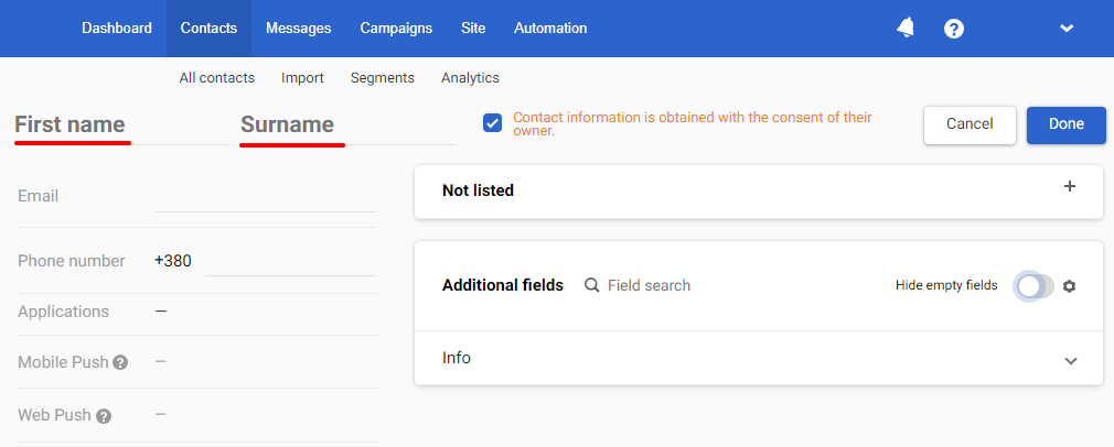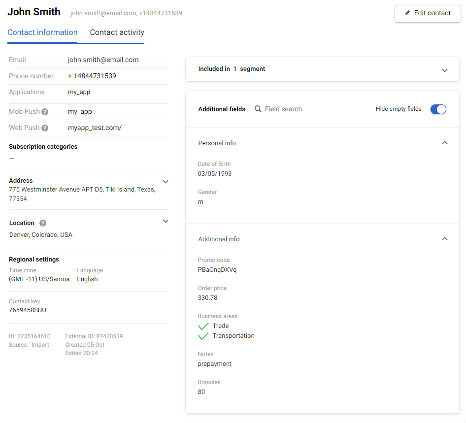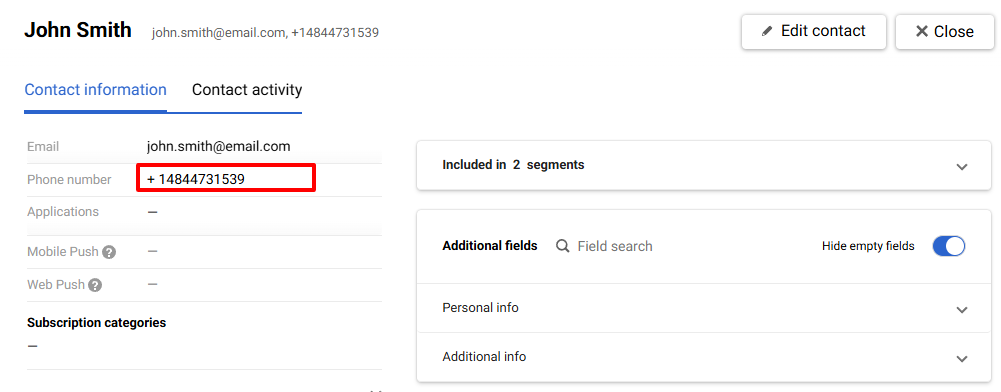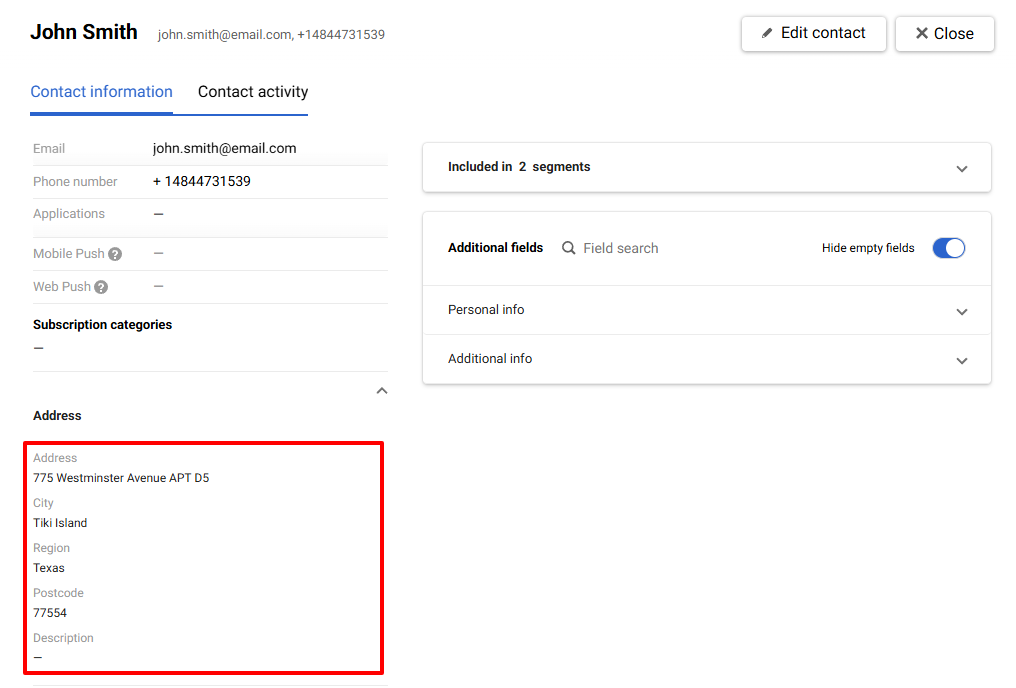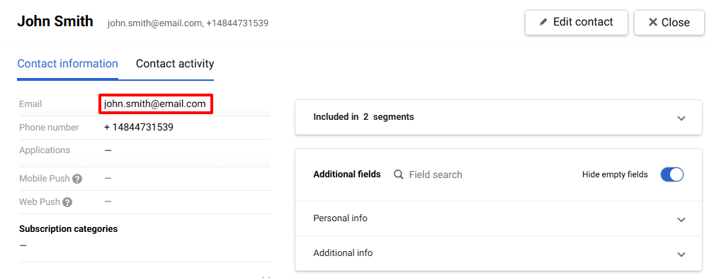 Contact fields are used to store and gather information about your subscribers and customers, such as their names, dates of birth, locations, and so on. You can use this data to create audience segments or personalize message content.