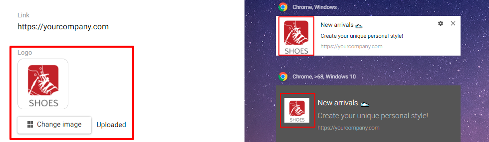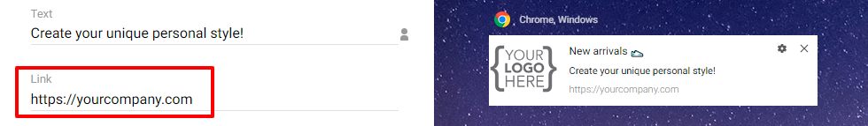 - Text. The main content of the Web Push. The optimal number of symbols is 45-70.