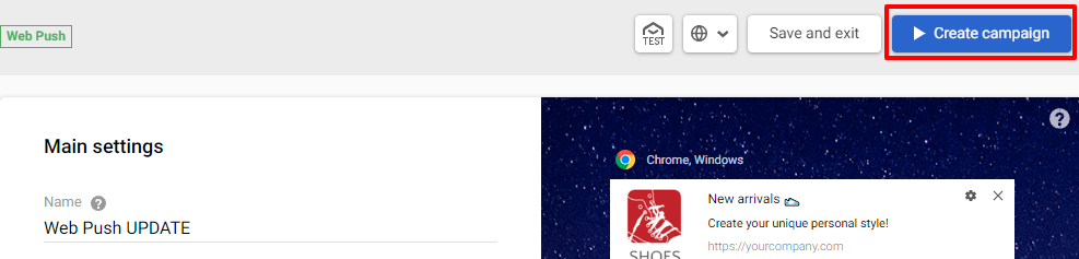 After finishing all the necessary settings, you can create a Web Push campaign.