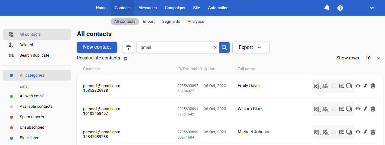 - The number of contacts in your database with Gmail addresses. You can find the exact number in Contacts → All Contacts by searching for gmail.