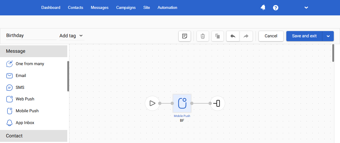 - Save and exit – the message will be saved in your account, and you can return to editing it.
