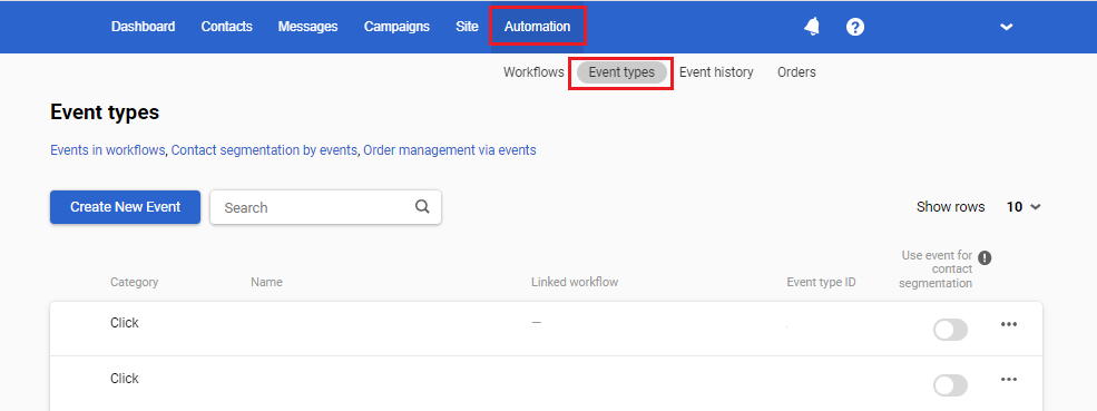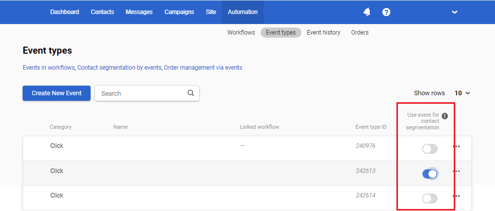 - Go to Automation → Event types and activate the switcher for the required event type.