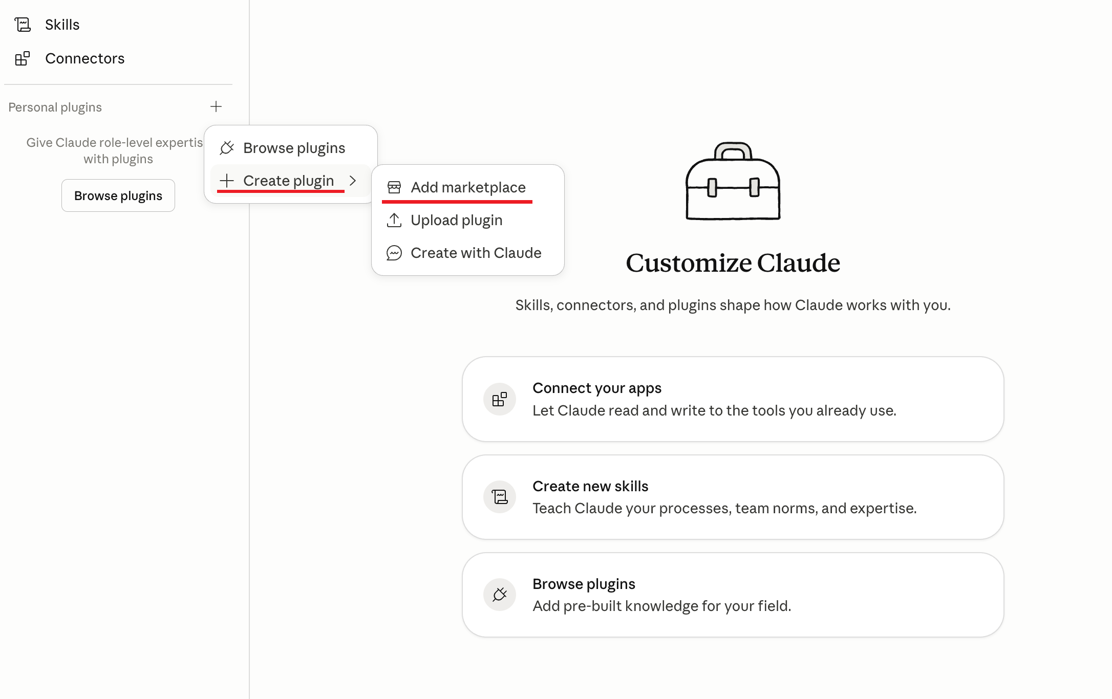 - Install any Anthropic plugin first to enable the Personal tab. Ā Go to Browse plugins, filter by Anthropic, and install any plugin, for example Marketing.