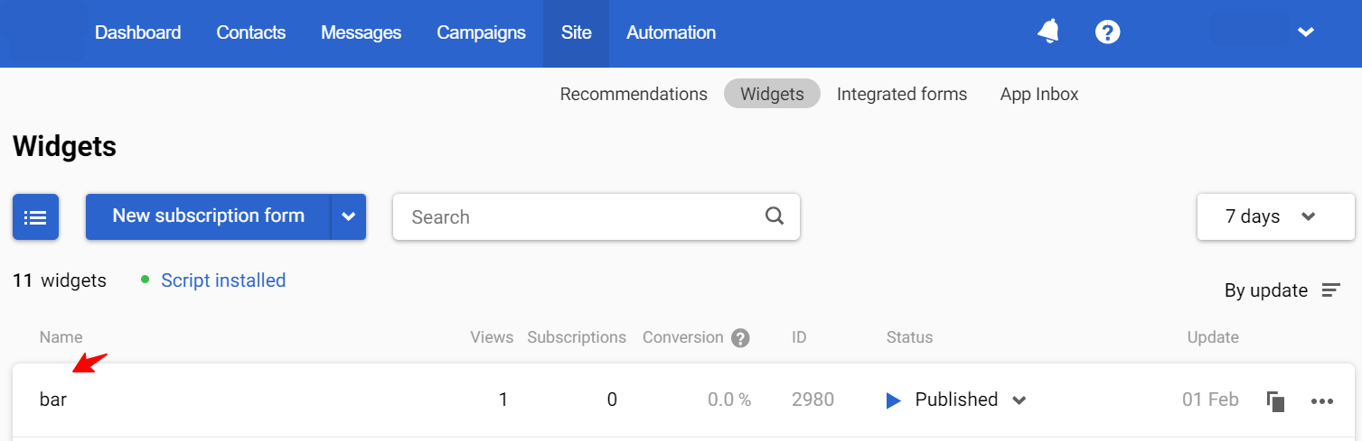 1.3. For subscription forms, activate the widget’s input fields.
