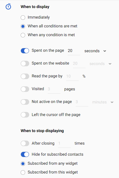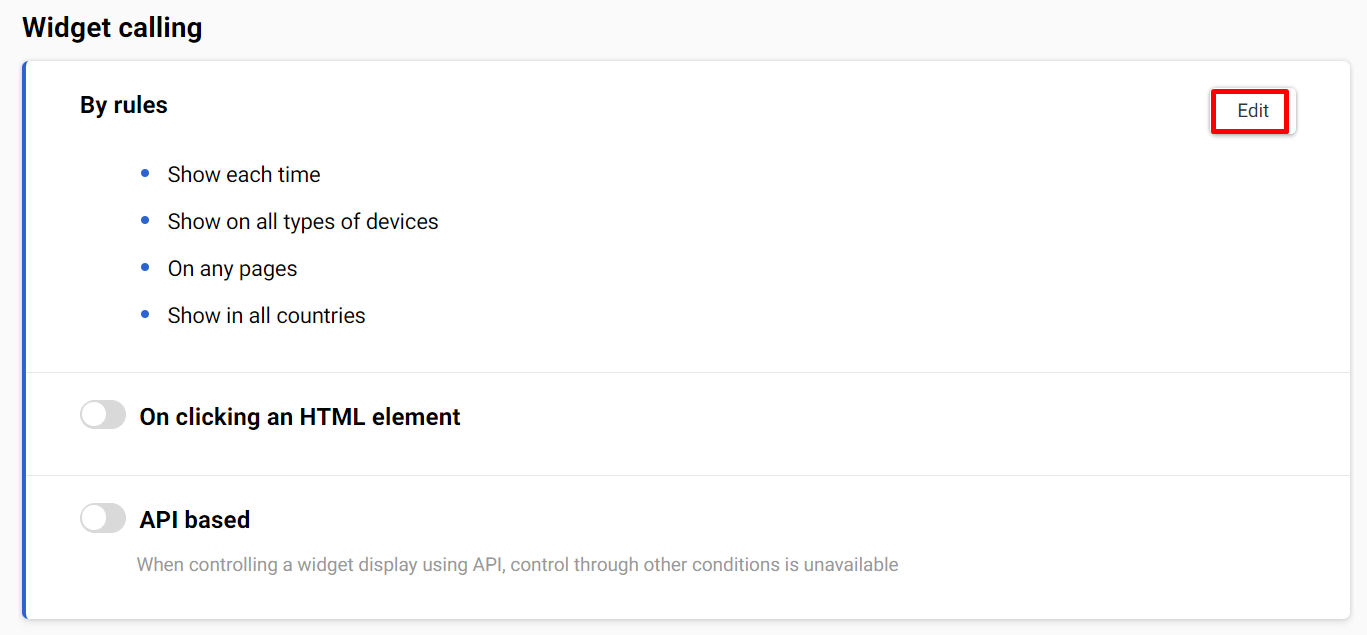 - Configure widget calling conditions.