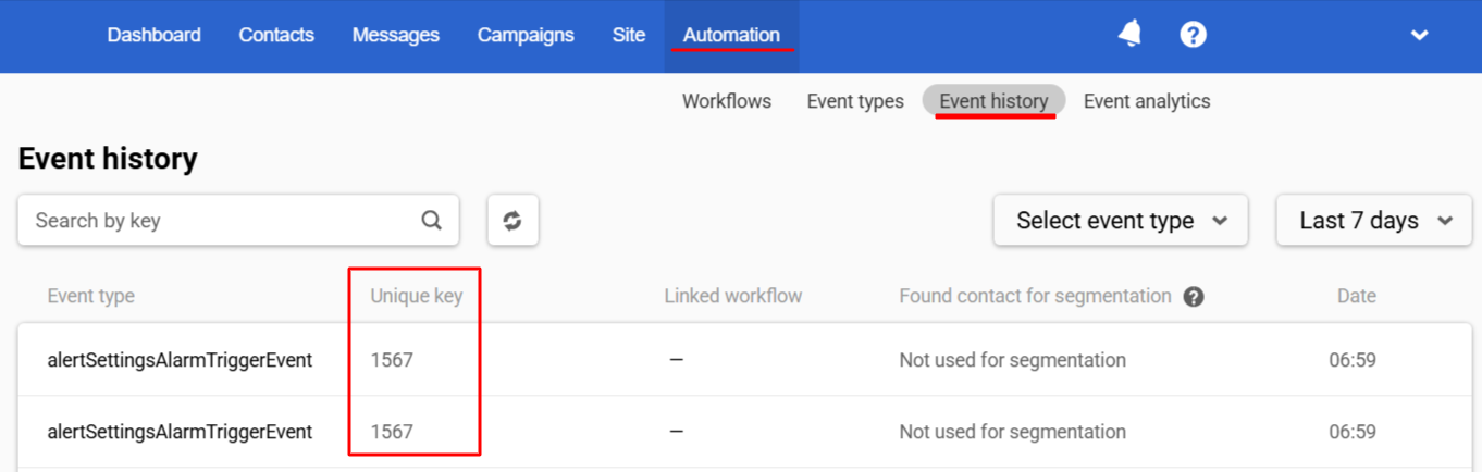 ImportantThe event unique key (email, contact ID, etc.) must match in the event that started the workflow and the event that should end the workflow.