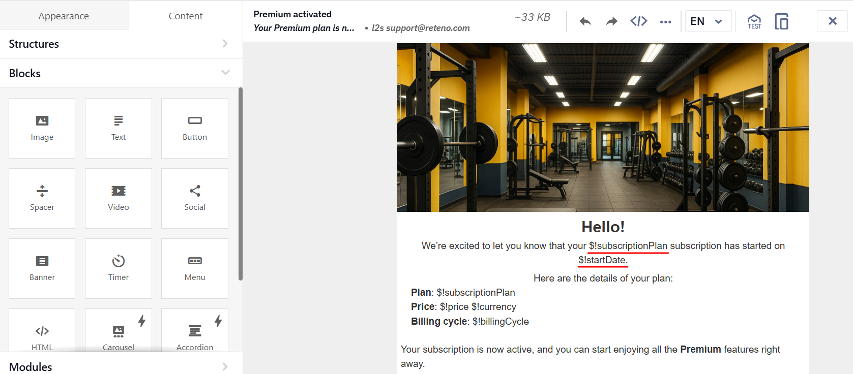 See how to create email template with dynamic variables