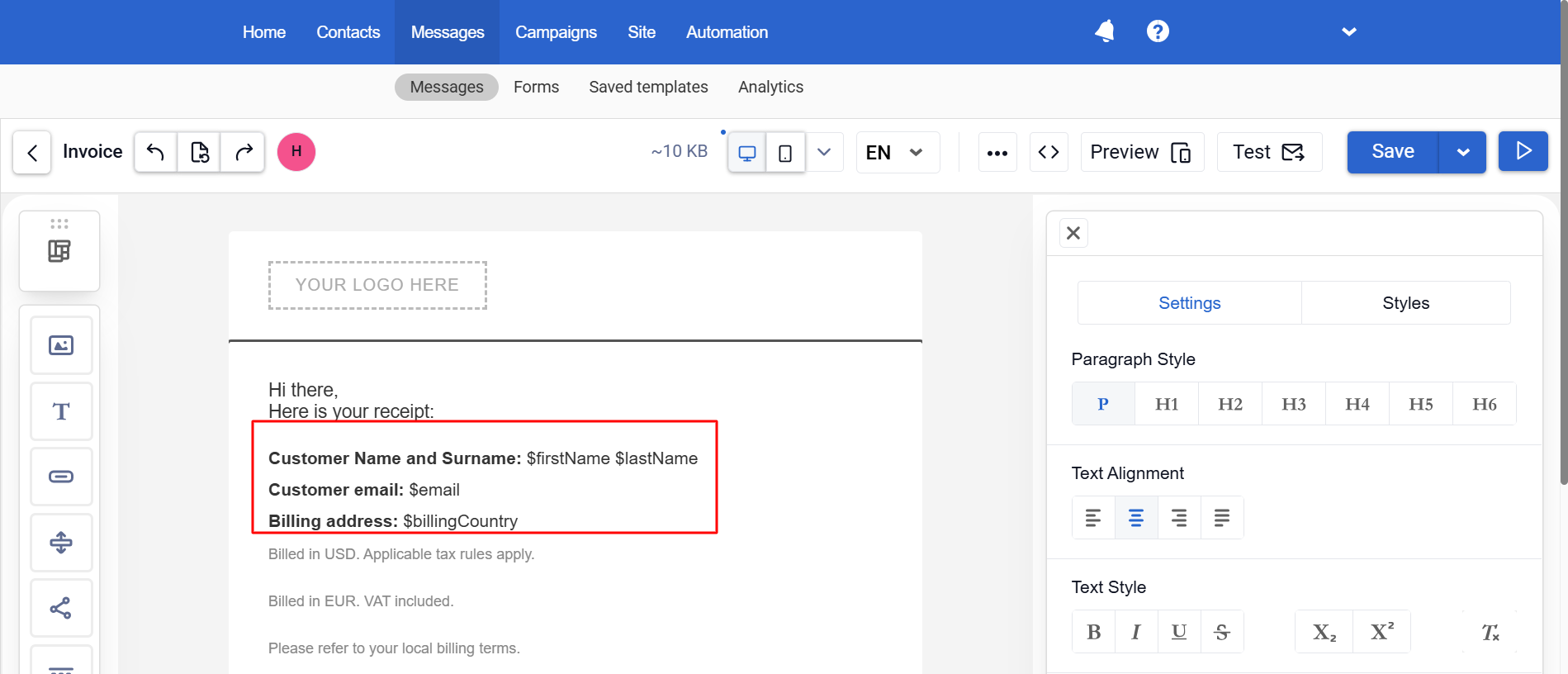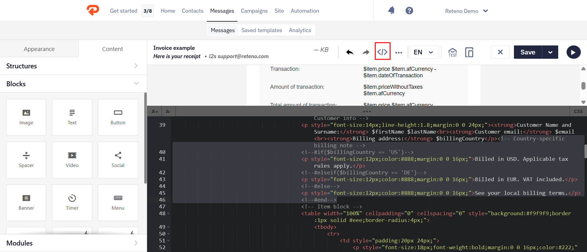 Velocity lets you render contact data, event parameters, and external source data directly in message templates. This article walks through the core techniques — variables, objects, arrays, loops, and conditions — using an invoice email as a practical example.