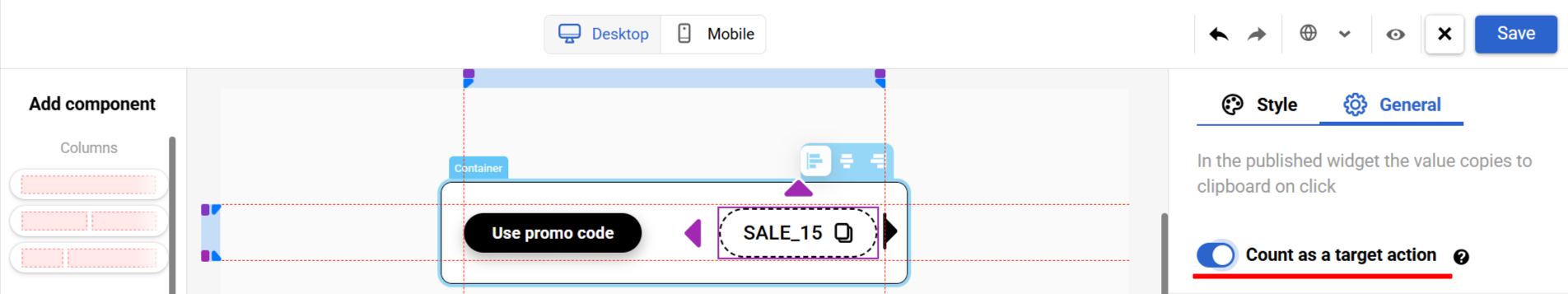 A new toggle, Count as target action, has been added in the editor. It is disabled by default: