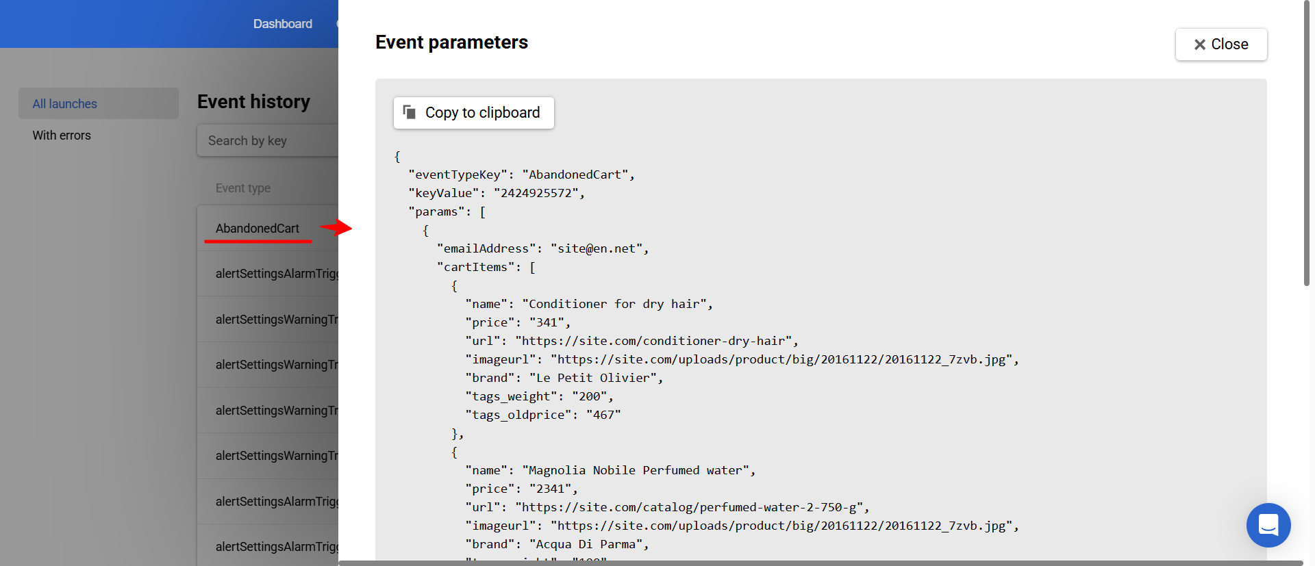 Using Product Arrays on the Example of an Abandoned Cart Event
